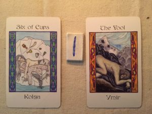 Kolga and Ymir both represent the thawing of some kind of ice—emotional, psychological, spiritual, or material—that has kept you captive. As that ice thaws, it reveals things we may have forgotten, whether memories, knowledge, or skills. Some of what is revealed may be surprising and/or shocking. Since you don’t know what is going to appear, the best way to prepare is to remain open-minded and flexible. This is not a time to stay stuck in absolutes of “this must”. Be open to unexpected possibilities, and give your creativity the top billing in the energies you bring to deal with what is revealed.