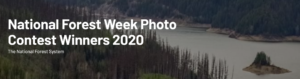 [Image description: A photo of trees with a river running through the middle of it, and a small island in the middle of the river. The words “National Forest Week Photo Contest Winners” are on the left side of the image.]