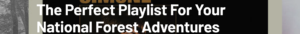 [Image description: The words “The Perfect Playlist For Your National Forest Adventures” appear in white letters over a background that shows teaser bits of various album covers.]